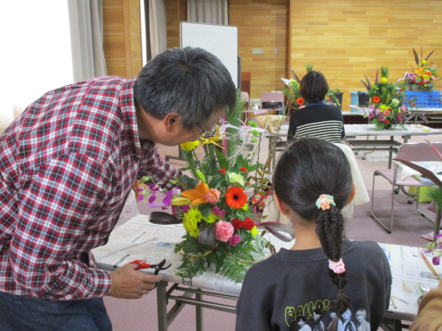 縁起の良いとされる花材の由来や選び方、アレンジのポイントを学びながらアレンジメントの制作を行いました。小学生から大人まで参加者の皆さんは終始楽しそうに取り組まれていました。お隣同士で相談したり、お互いの作品を見せあったりして交流の場にもなったようです。参加者からは「家の中がパッと明るくなった」「もうお正月が来たみたい」といった喜びの声が多数寄せられ、年末の慌ただしい時期に、花と向き合う和やかなひとときになったようです。