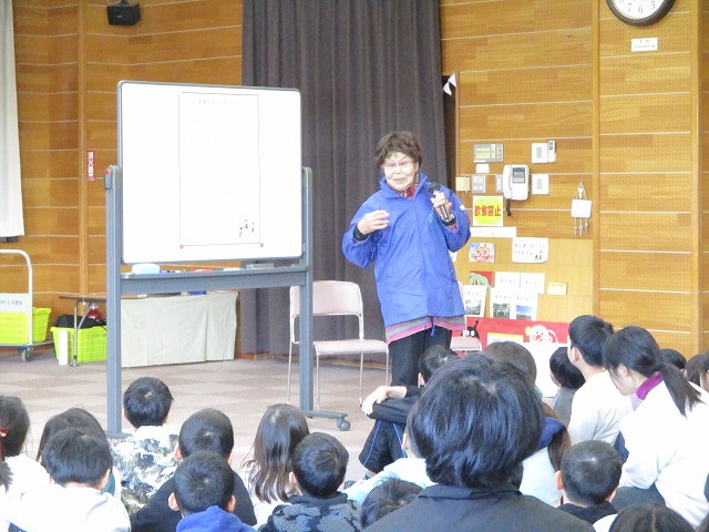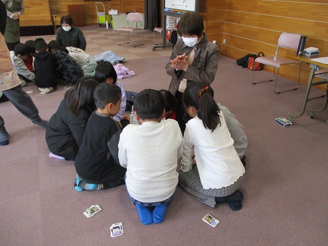 昨年に引き続き今年も口之津史談会さんにご協力いただき、かるた大会を行いました。競技前に口之津史談会の方より1枚ずつ「口之津カルタ」の解説をしていただきました。また、口之津史談会の方には読み手や各グループへの見守りなどをしていただきました。